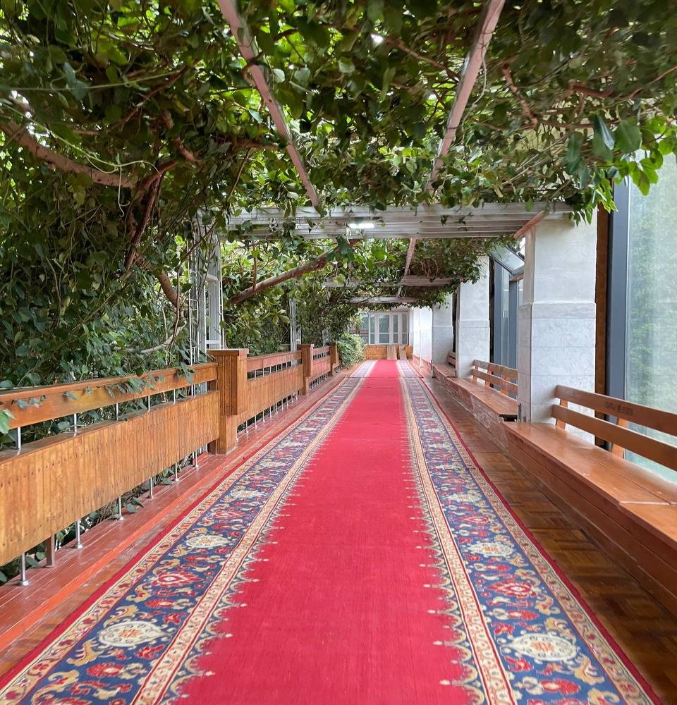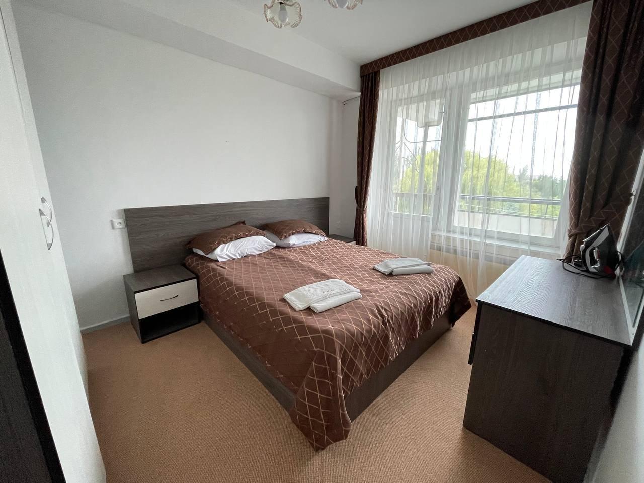 Гостиничный комплекс окружает парк с березовой рощей, сосновым бором, розарием, цветниками, фонтанами.