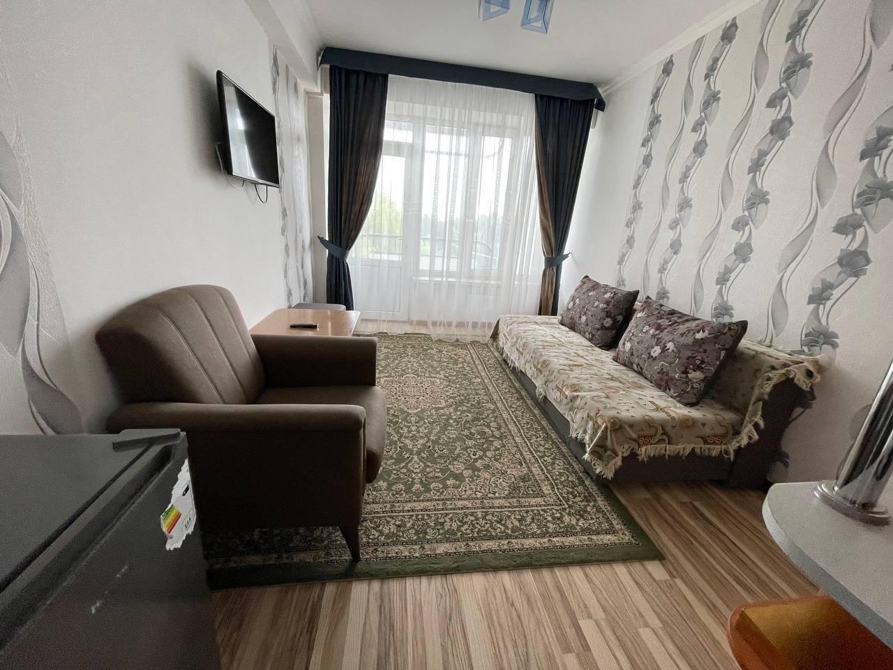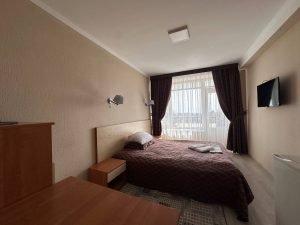 Номер расположен на северной стороне без балкона состоит из прихожей, спальни, гостиной комнаты санузел с лежачей ванной. В комнате находится односпальная кровать, мягкая мебель, сервант для посуды мягкие кресла, журнальный столик, TV, посуда в наборе, холодильник.
