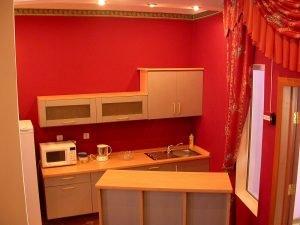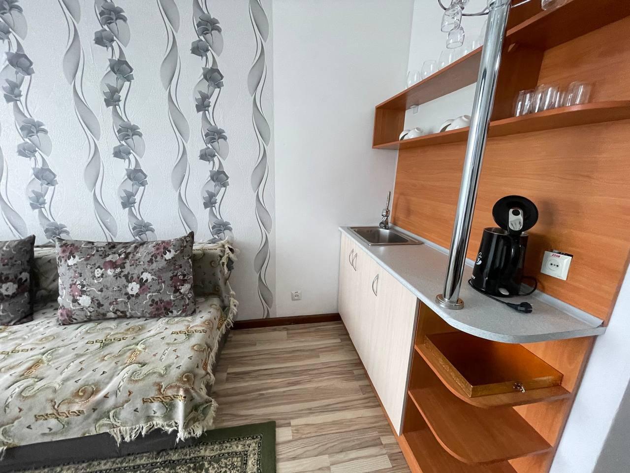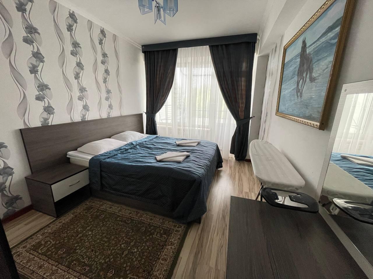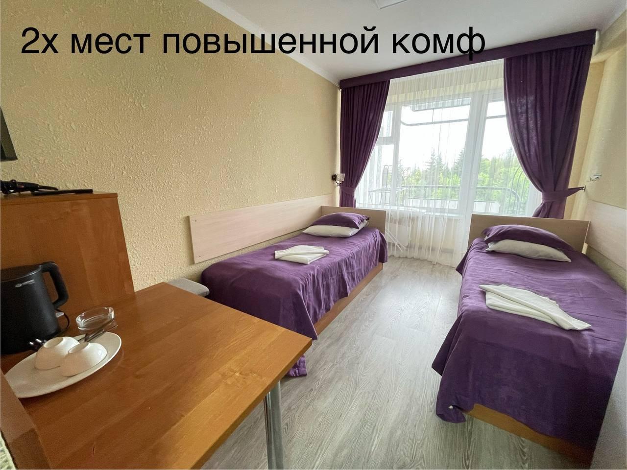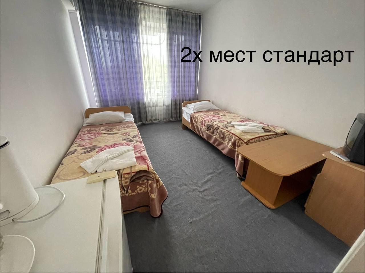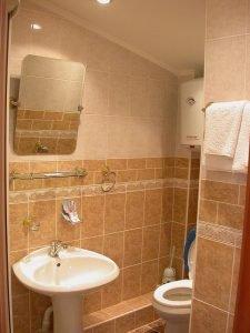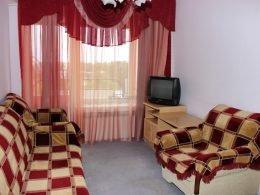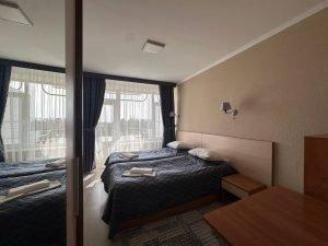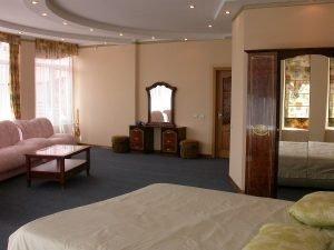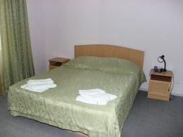Двухкомнатный номер, все номера после евроремонта, итальянская мебель. В номере 2 односпальные кровати или одна двуспальная, холодная и горячая вода круглосуточно, отдельный санузел с душем, TV, холодильник, телефон