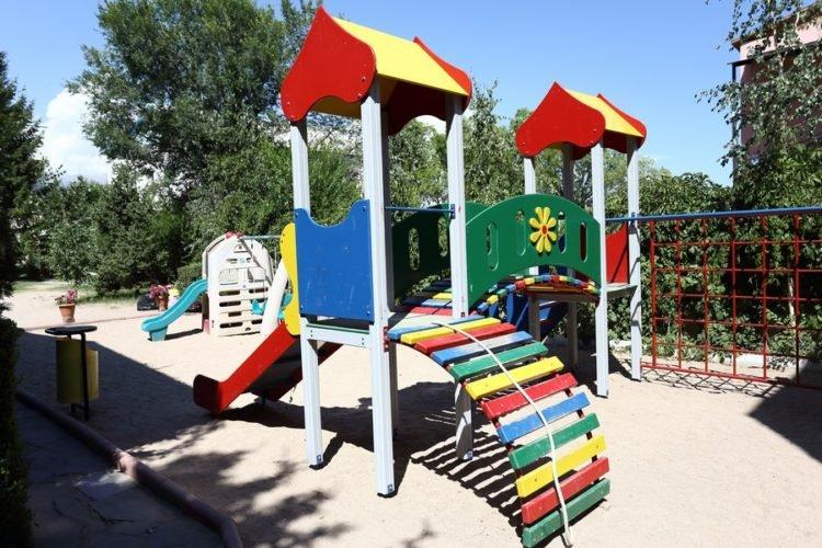 Территория вокруг корпуса и коттеджей зеленная, ухоженная, большая.