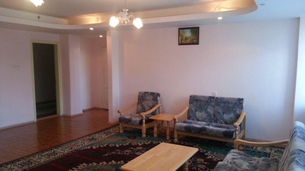 Две комнаты, 3-и кровати односпалки, две в одной комнате, одна в другой, прикроватные тумбочки, все номера с балконом, выход на балкон с обеих комнат, туалет и ванная с умывальником отдельно, горячая и холодная вода круглосуточно, вешалка, ТВ, холодильник, стол, стулья, шкаф, ковер, стены под яйцо, занавеска, балкон выходит и на горы (север) и на озеро (юг) - есть место для дополнительной кровати.