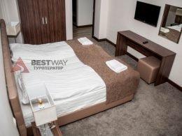2-комнатный 2-местный Номера на 3 этаже. холодильник, телевизор со спутниковым ТВ, шкаф, зеркало, набор чайной посуды, чайник, сейф; с/узел, душевая кабина.
