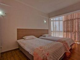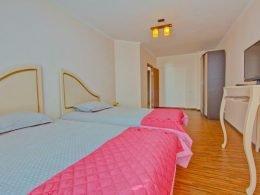 Номер–на 5- ом этаже с прекрасным видом на озеро. Номер 4-х местный. 3-х комнатный номер (гостиная, 2 спальные комнаты). В номере: спутниковое ТВ, холодильник, мягкая мебель, столик, шкаф для одежды, тумбочки, гардероб. В спальне – четыре кровати полуторки . Есть возможность 2-х. дополнительных мест.