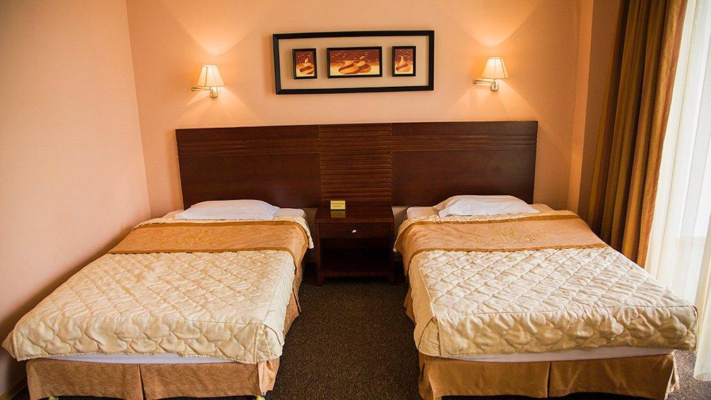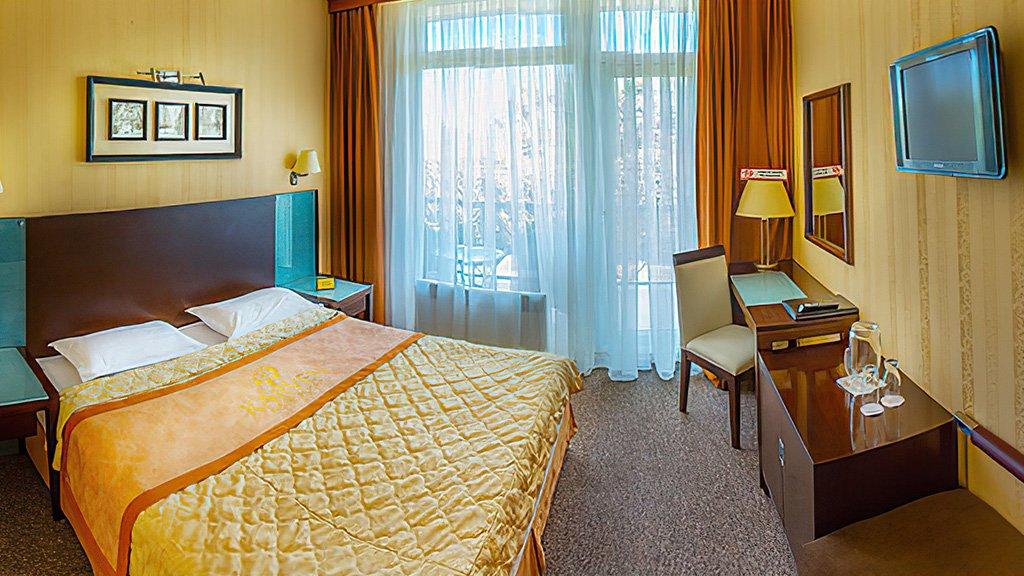 Стандартный двухместный номер располагается в четырёхэтажном корпусе, представляет собой комфортный однокомнатный номер с двумя полутораспальными кроватями, сан. узлом (душ-кабина), балконом с ротанговой мебелью (столик, кресло) с видом на озеро или на горы. В номерах на 4-м этаже балконов нет. Удобства: Wi-fi, Tв, Сейф, Мини-бар, Душ, Телефон, Рабочая зона, Полотенца, Холодильник