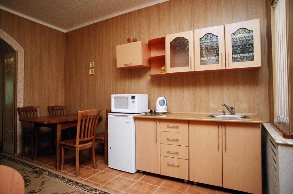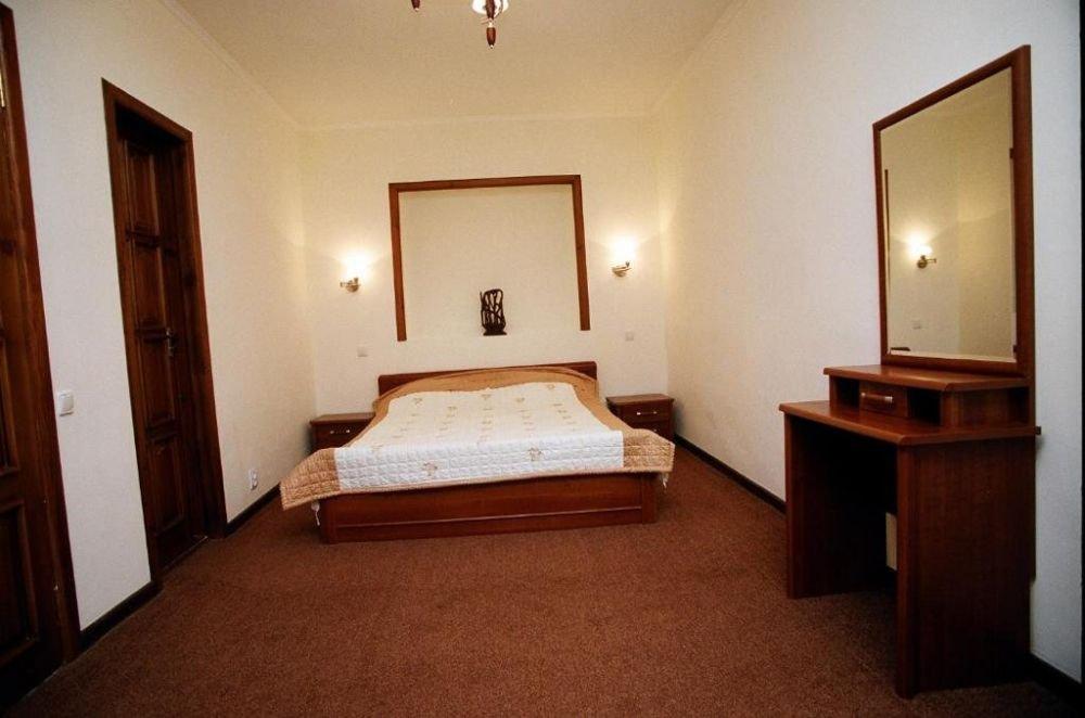 3-х комнатный номер в 2-х этажном коттедже. В номере: современная мебель, ванна с лечебной минеральной водой, джакузи, биде, камин, теплые полы, спутниковое ТВ, телефон, сейф, интернет, кухня, терраса с плетеной мебелью.