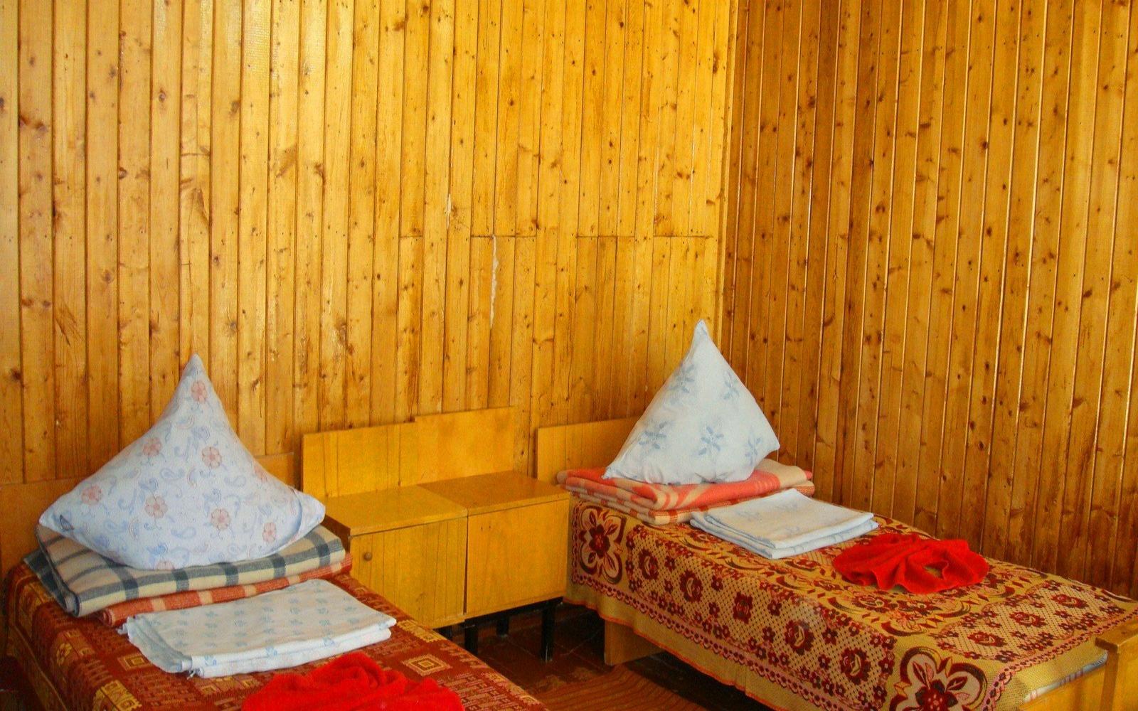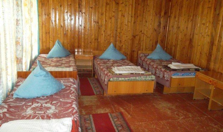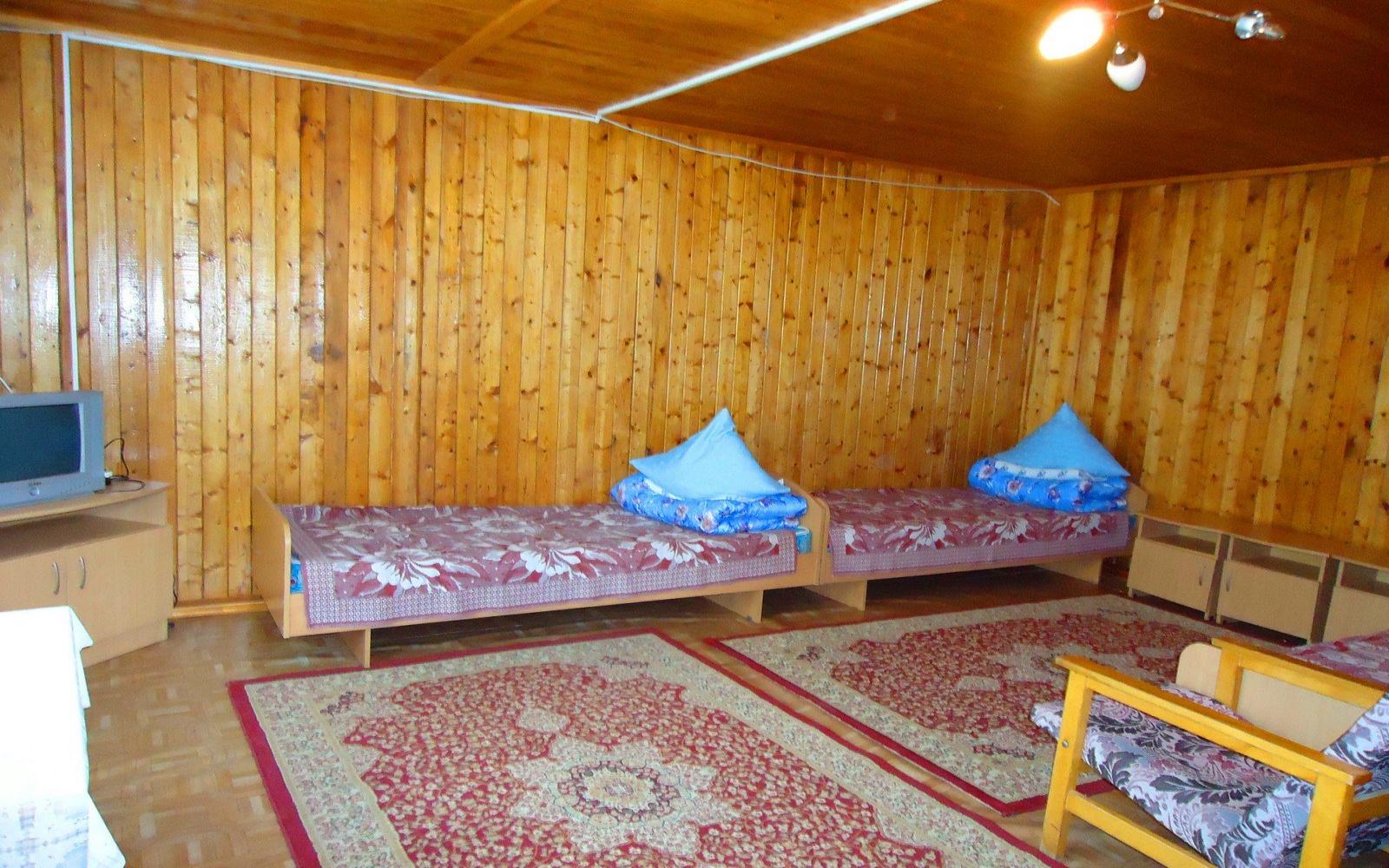 2-х 3-х местный номера в, деревянном коттедже со смежными номерами. В номере: кровати, тумбочка, туалет и умывальник на 2 номера